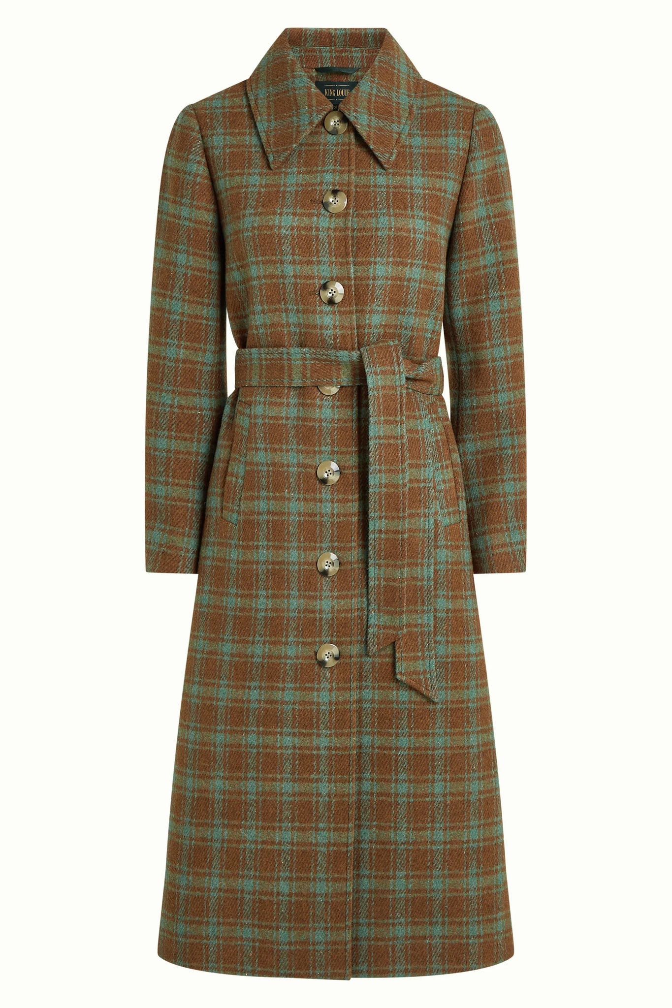 This checkered coat features a lined interior and welt pockets for added convenience. Made from non-stretch woven polyester, it includes long sleeves, a big collar, and a tie belt, fastening securely with buttons for comfortable and confident wear.
