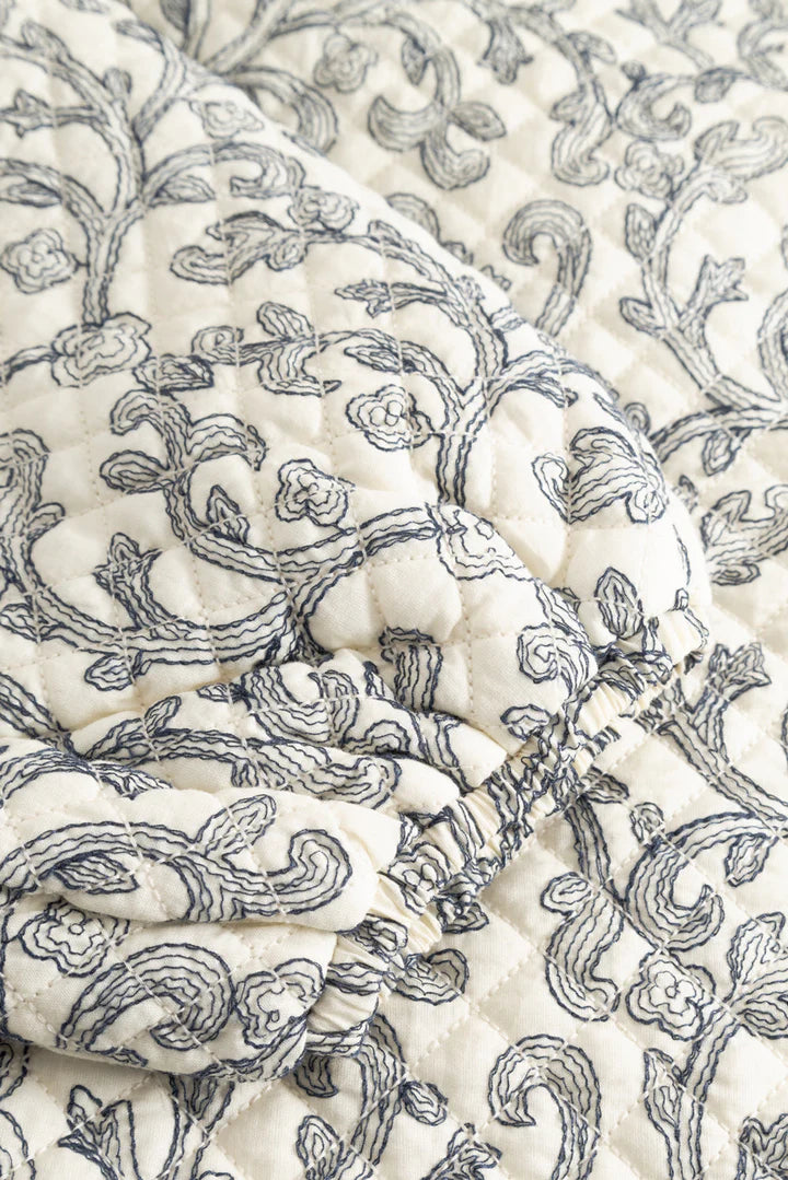 The N-Mariam Jacket is a short quilted cotton jacket featuring delicate embroidery, a classic collar, and a front zipper closure.