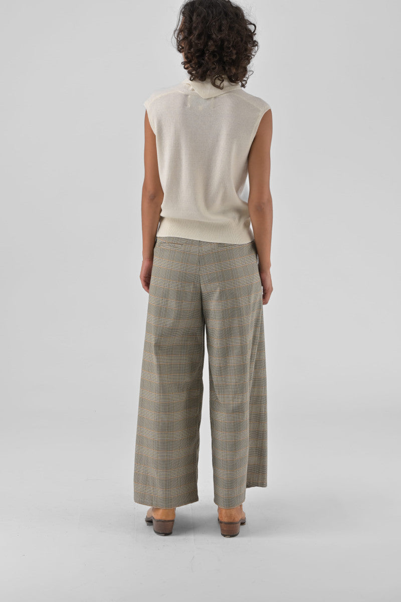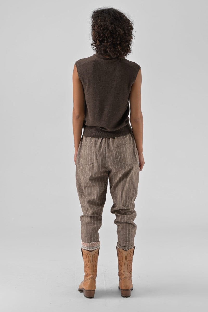 The Nalani sweater seduces with its natural elegance and its resolutely feminine look. Its fine and light knit, mixing mostly viscose and wool, offers a fluid fall and a soft touch, ideal for mid-season and sunny days. Sleeveless, Nalani is distinguished by its scarf detail integrated into the neckline, to be tied freely as desired.